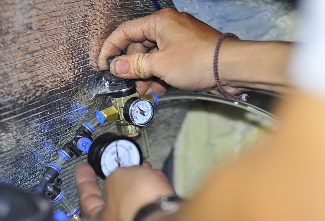 Trong buồng máy của chiếc xe có hệ thống đồng hồ đo áp suất khí.