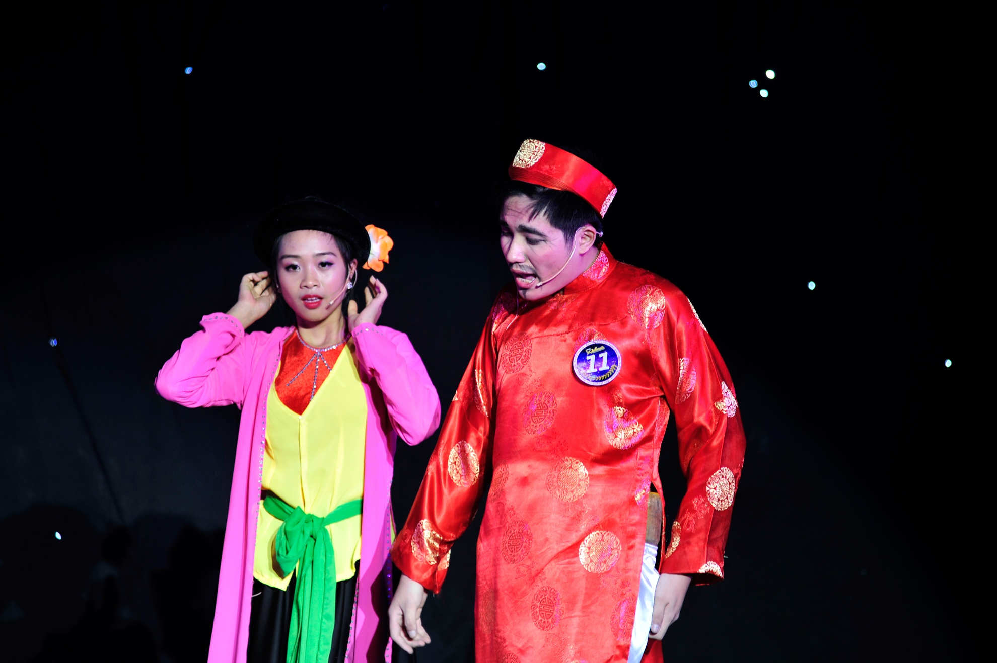 | Điểm khác biệt trong tất cả các tiết mục tài năng đó là vở kịch của cô Mầu - Thu Trang và phú ông Hoàng Sơn như nhắc nhở giới trẻ về một loại hình nghệ thuật đang dần trở nên xa lạ và lãng quên. |