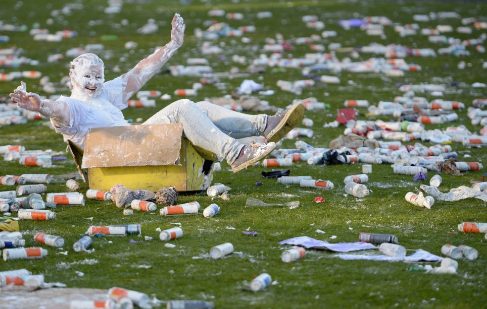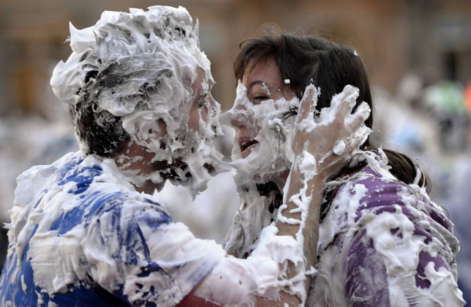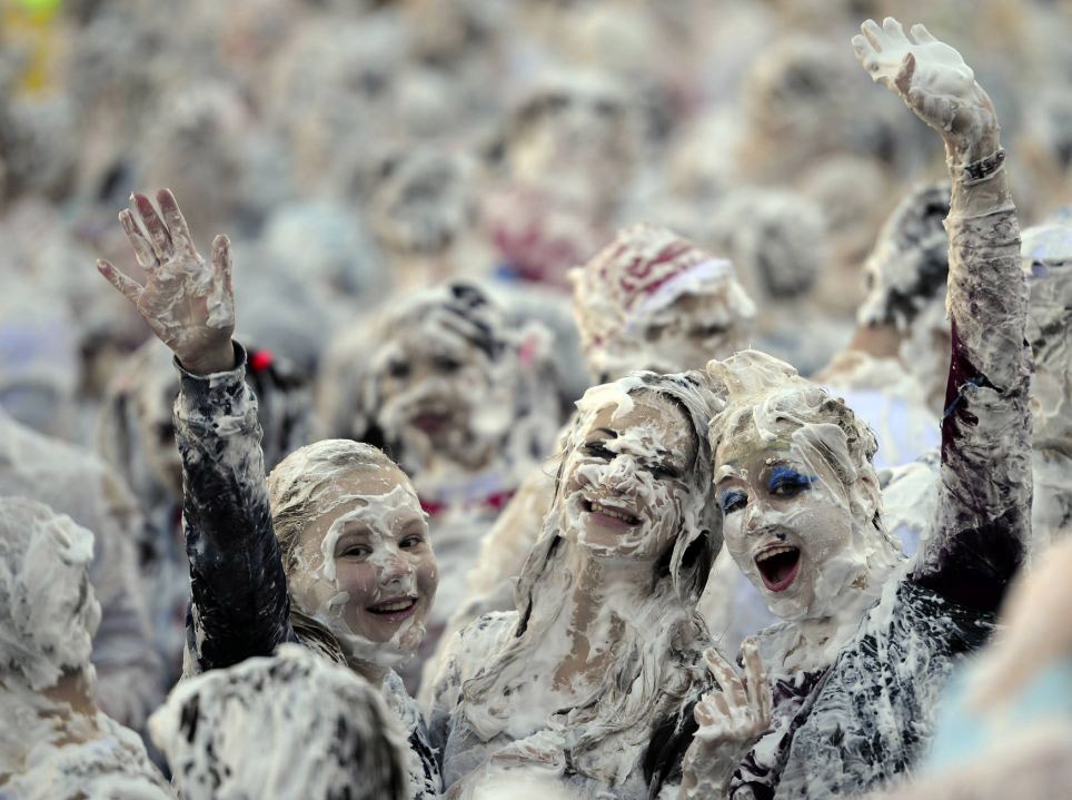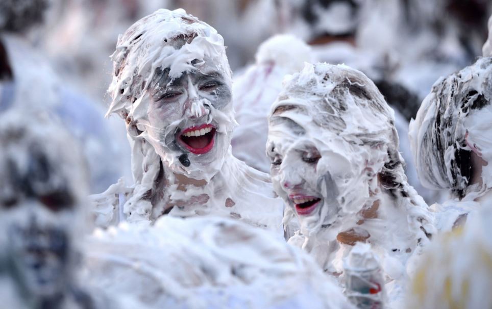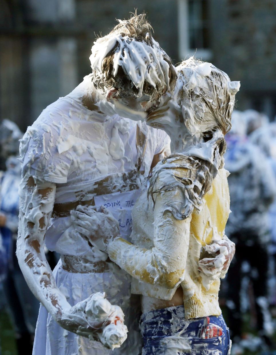 | Trong dịp Raisin Weekend, sinh viên trường St Andrew cùng tham gia cuộc chiến bọt. Họ phủ bọt lên khắp cơ thể. Ảnh: Getty Images. |