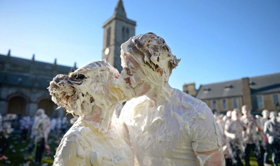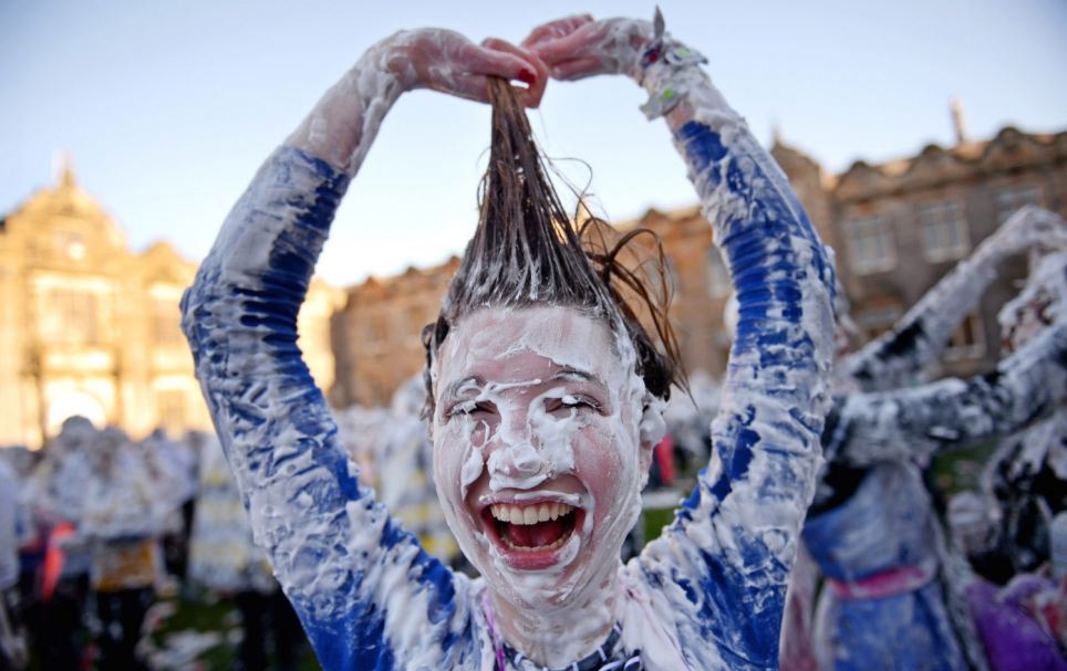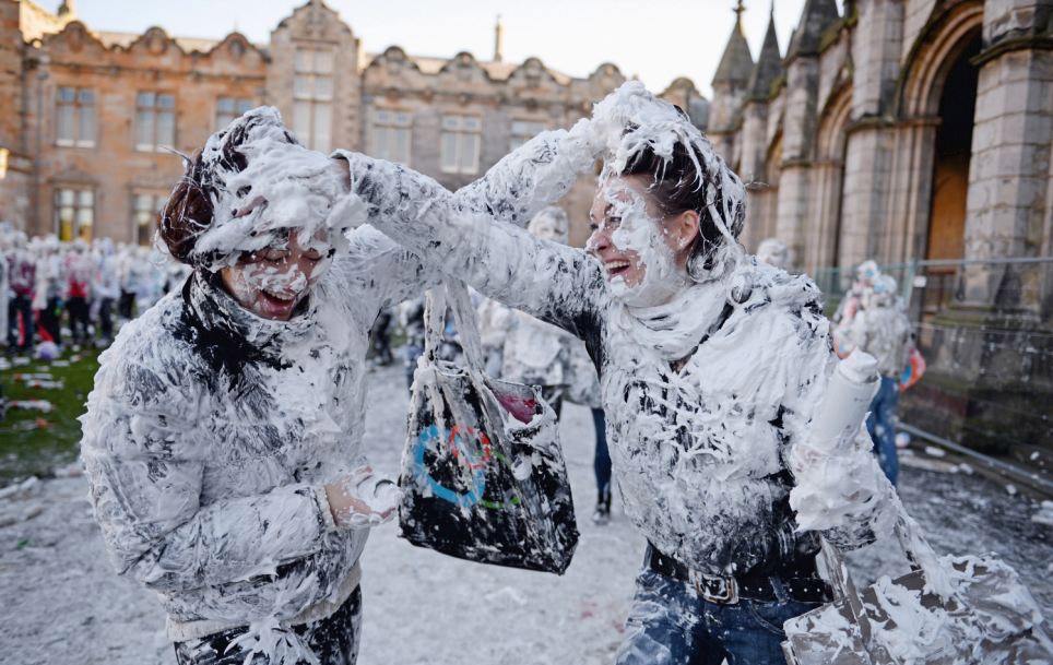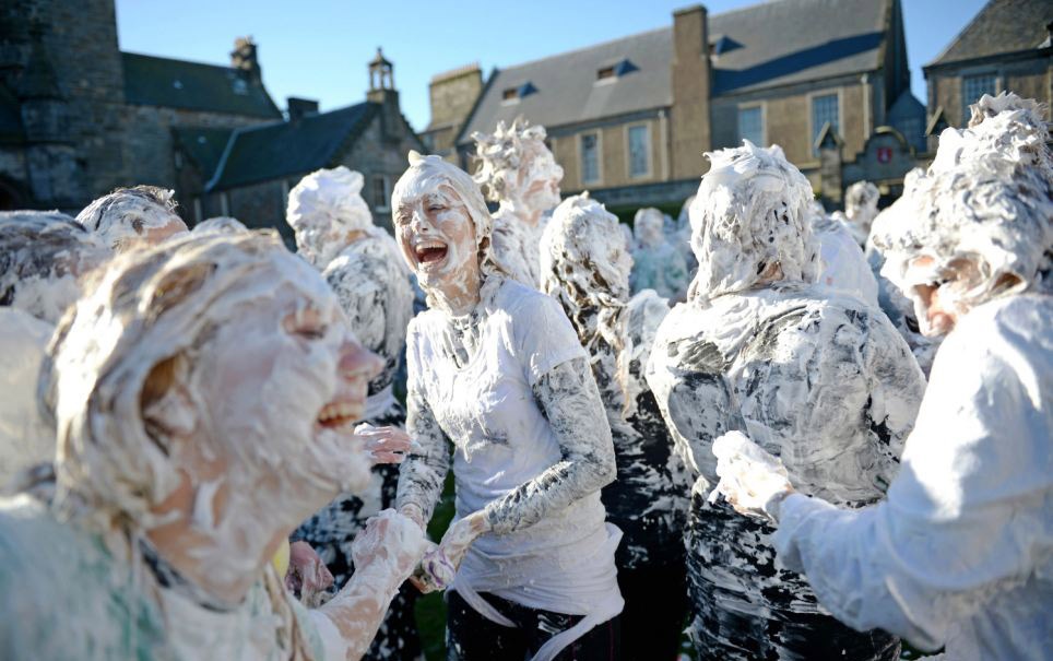 | Các sinh viên cùng tham gia tiệc bọt trắng. St Andrew là trường đại học lâu đời nhất Scotland. Ảnh: Getty Images. |