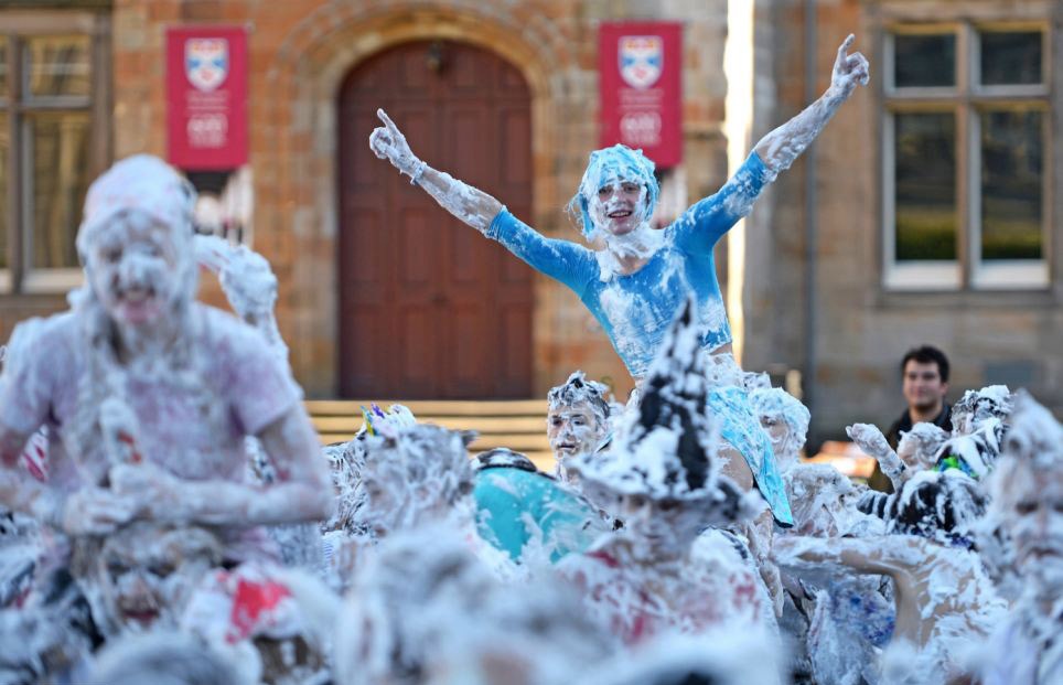 | Khoảnh khắc vui nhộn tại Đại học St Andrew. Các sinh viên cùng hòa mình vào sự kiện để củng cố tinh thần đoàn kết. Ảnh: Getty Images. |