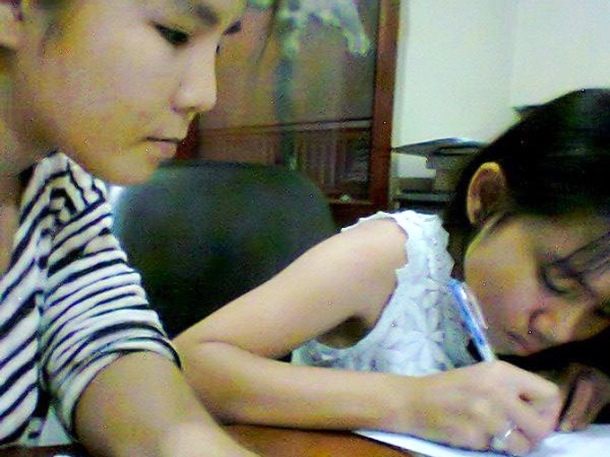 | Bạn Lê Thị Lợm tranh thủ dạy thêm buổi tối. |