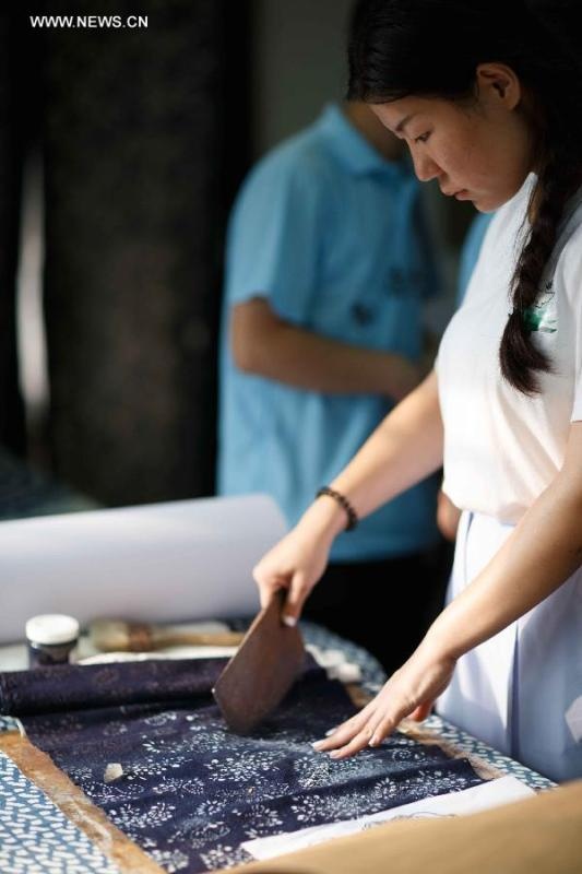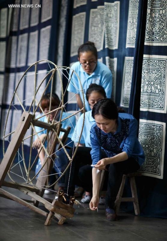 | Sinh viên Viện Công nghệ Bắc Kinh học làm vải trúc bâu trong kỳ nghỉ hè như một hoạt động nhằm góp phần gìn giữ truyền thống dân tộc. |