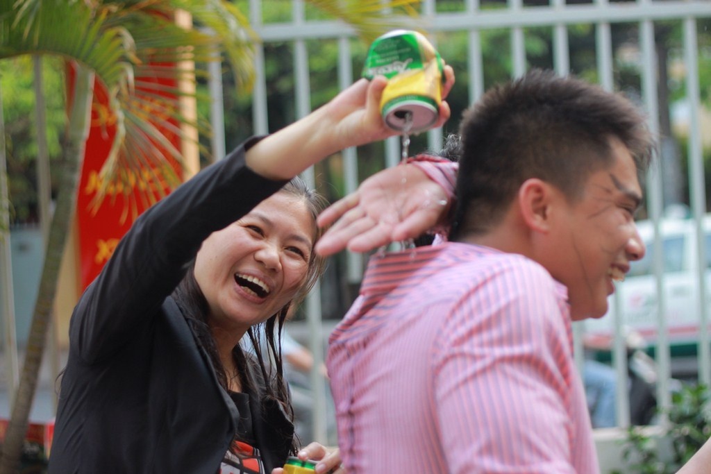 | Mọi hình thức té nước từ xịt, dùng xô chậu đén vỏ lon bia được áp dụng. |