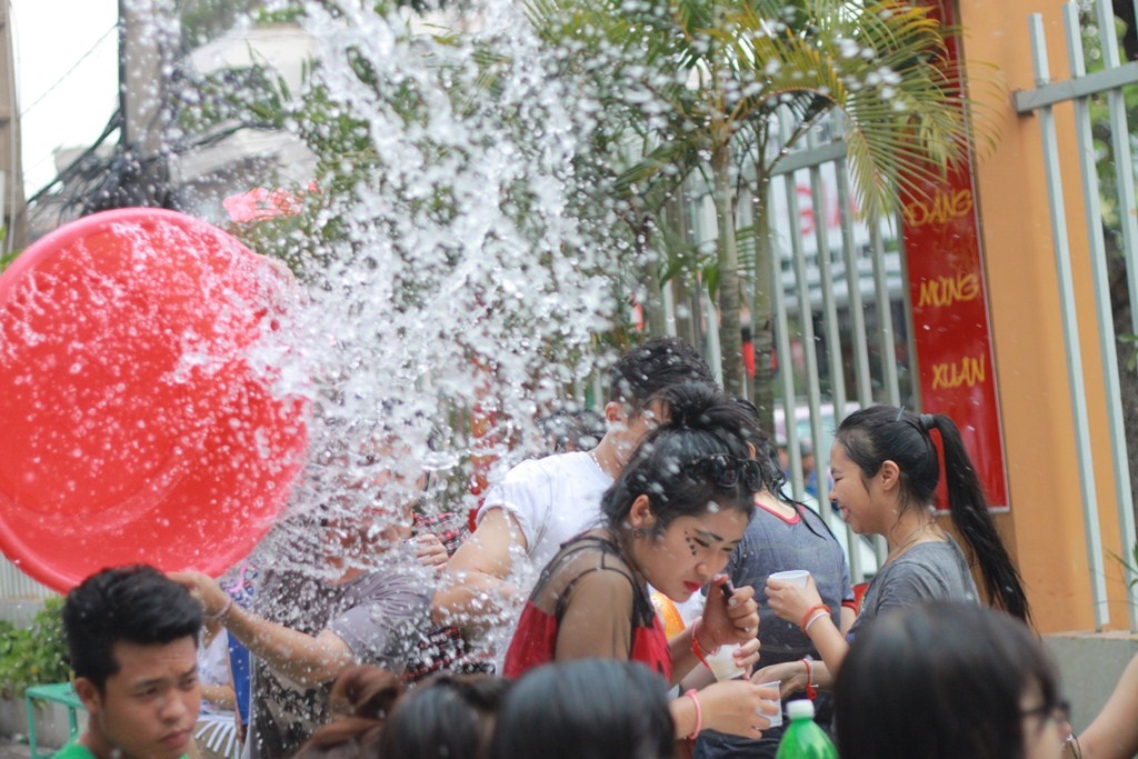 Sinh viên ướt sũng trong Tết Lào tại Sài Gòn