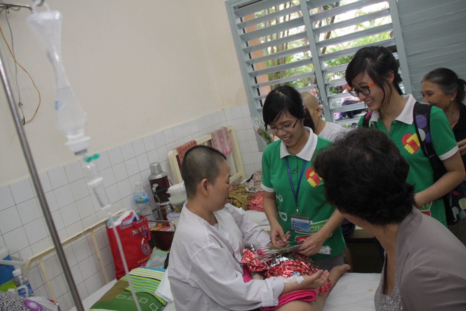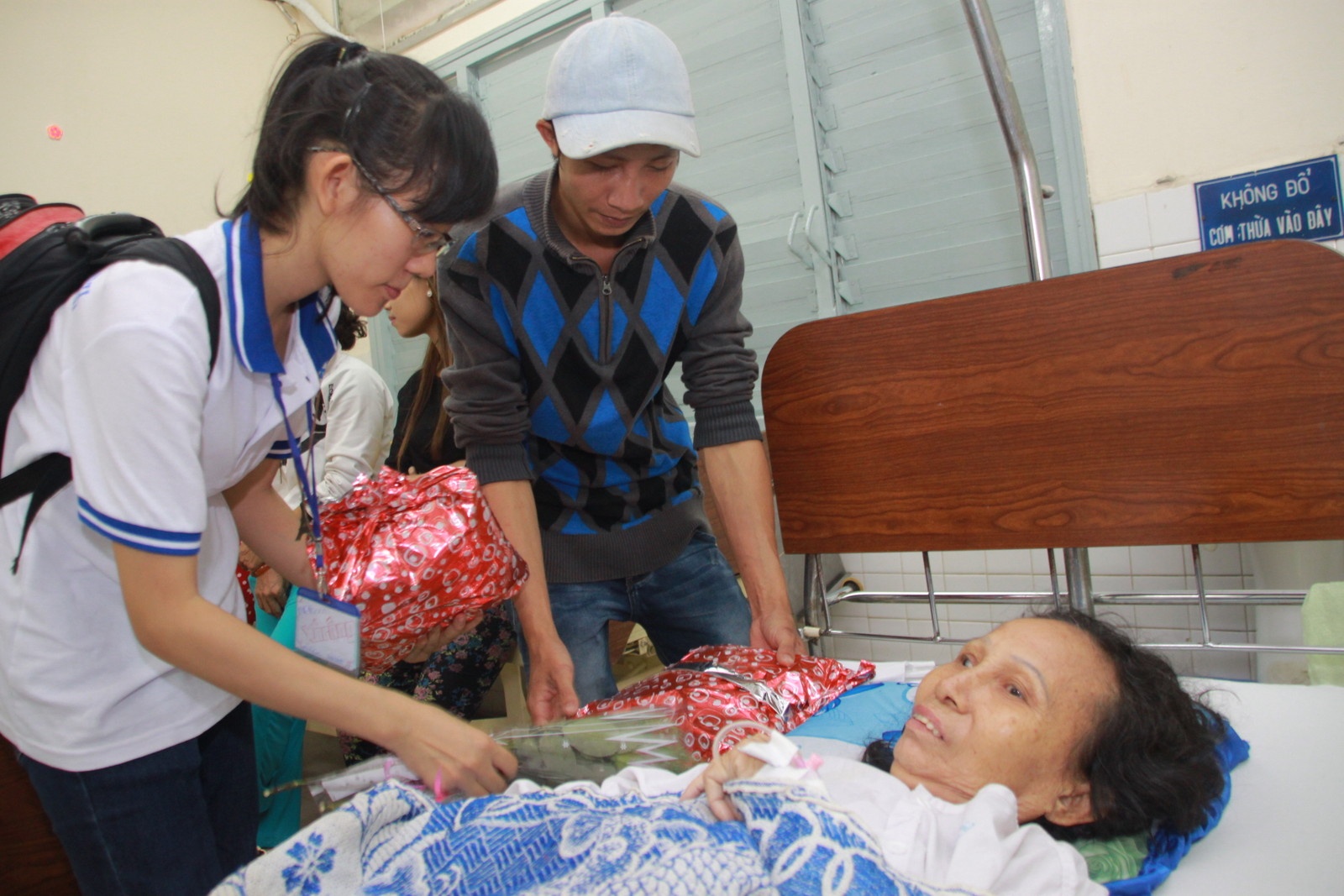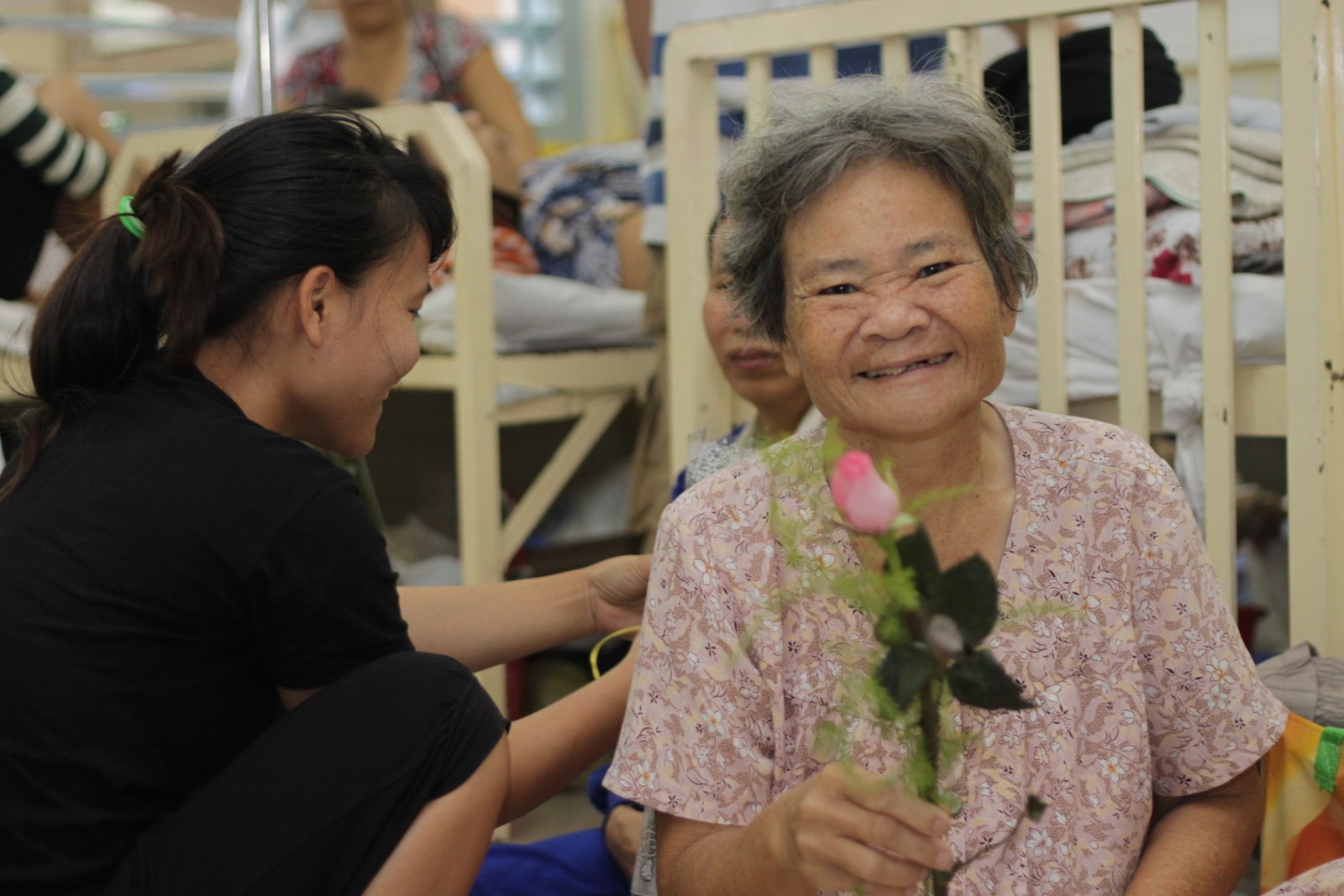 Sinh viên vào viện tặng hoa cho nữ bệnh nhân ung thư