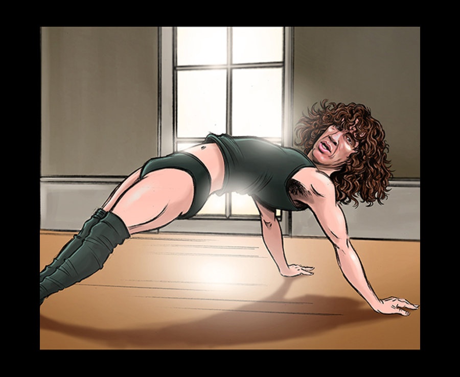 | Carles Puyol tóc xoăn khoe eo thon, chân dài trong vai vận động viên uốn dẻo. |