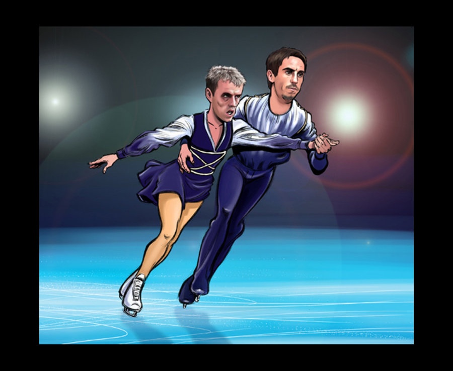 Anh em cựu danh thủ Gary và Phil Neville hóa thân thành một đôi nhảy trượt băng nghệ thuật. |