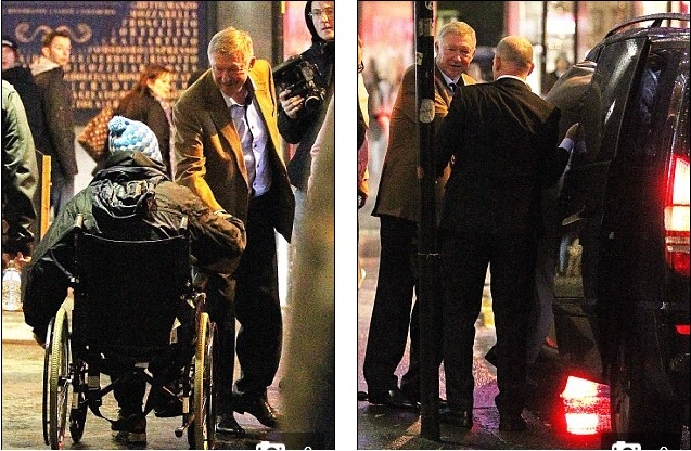 Theo Daily Mail, sau khi ăn trưa cùng một vài người bạn, Sir Alex Ferguson quyết định dạo quanh nhà hàng 47 King Street West ở trung tâm thành phố Manchester. Trong lúc dạo phố, cựu HLV huyền thoại của Manchester United gặp một người ăn xin ngồi trên chiếc xe lăn.