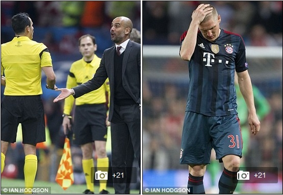 HLV Pep Guardiola không phục quyết định của trọng tài vì cho rằng cậu học trò đã kịp thu chân trở lại.