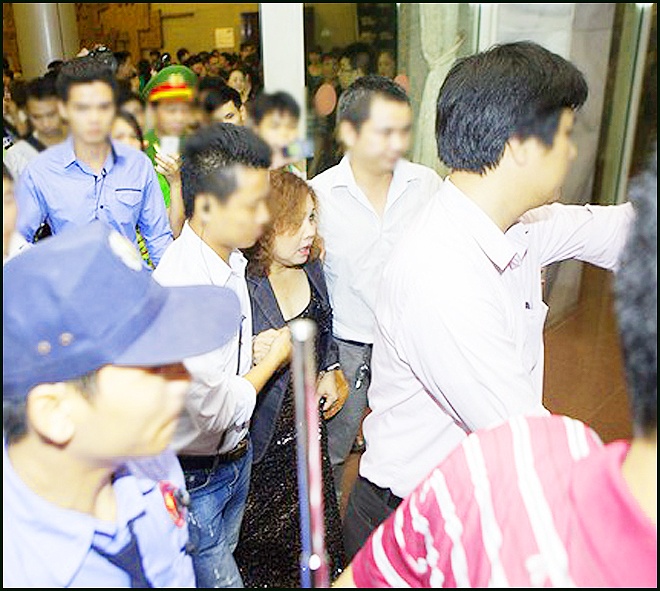 | Tuy nhiên, nữ ca sĩ vẫn không giấu được sự hốt hoảng, lo lắng vì có quá nhiều người tò mò vây quanh. |