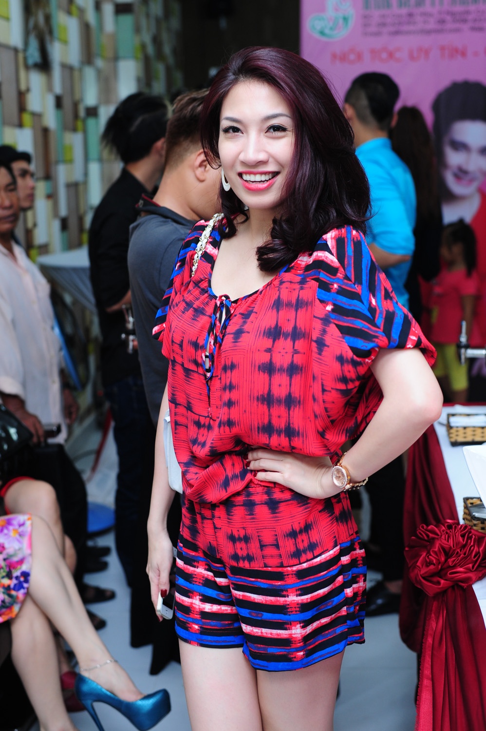 | Ca sĩ Khánh Ngọc trẻ trung và duyên dáng khi tới chia vui cùng bạn bè. |