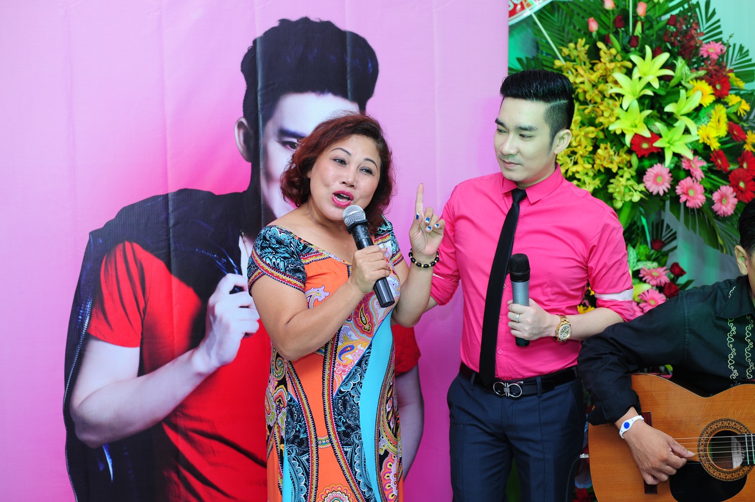 Trong sự kiện này, hai chị em nhiệt tình hát tặng các vị khách đến dự. Sau đó, Quang Hà còn vui vẻ tư vấn thêm về khoản làm đẹp cho đàn chị.