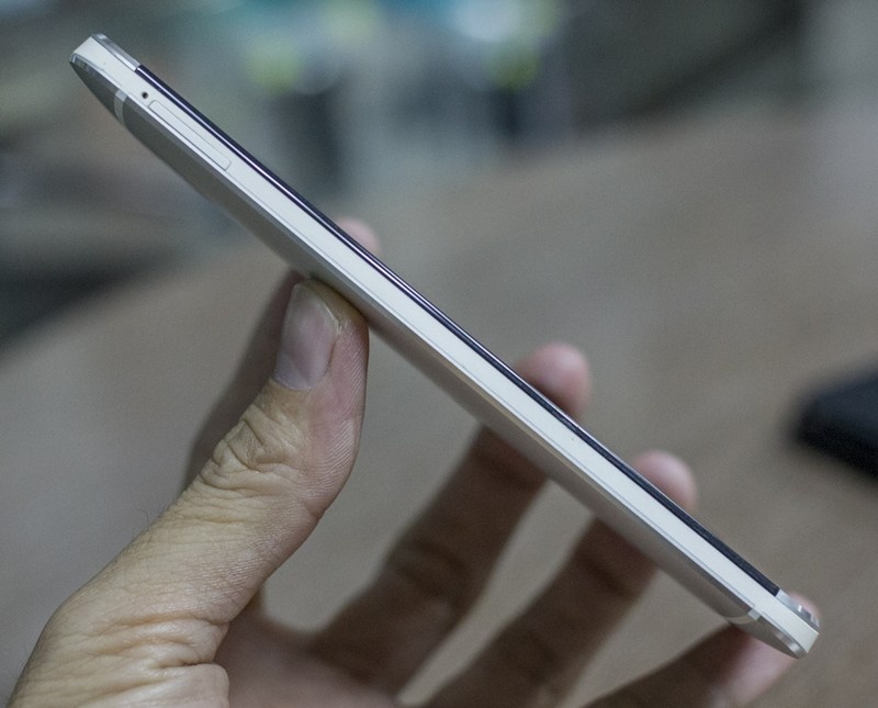 Sky Nano có kích thước mỏng nhưng nhờ thiết kế nguyên khối và trọng lượng nặng nên cầm trên tay khá chắc chắn. Dù màn hình lớn hơn nhưng Sky Nano cũng không nặng hơn nhiều so với iPhone 5 (136 so với 112 gram).