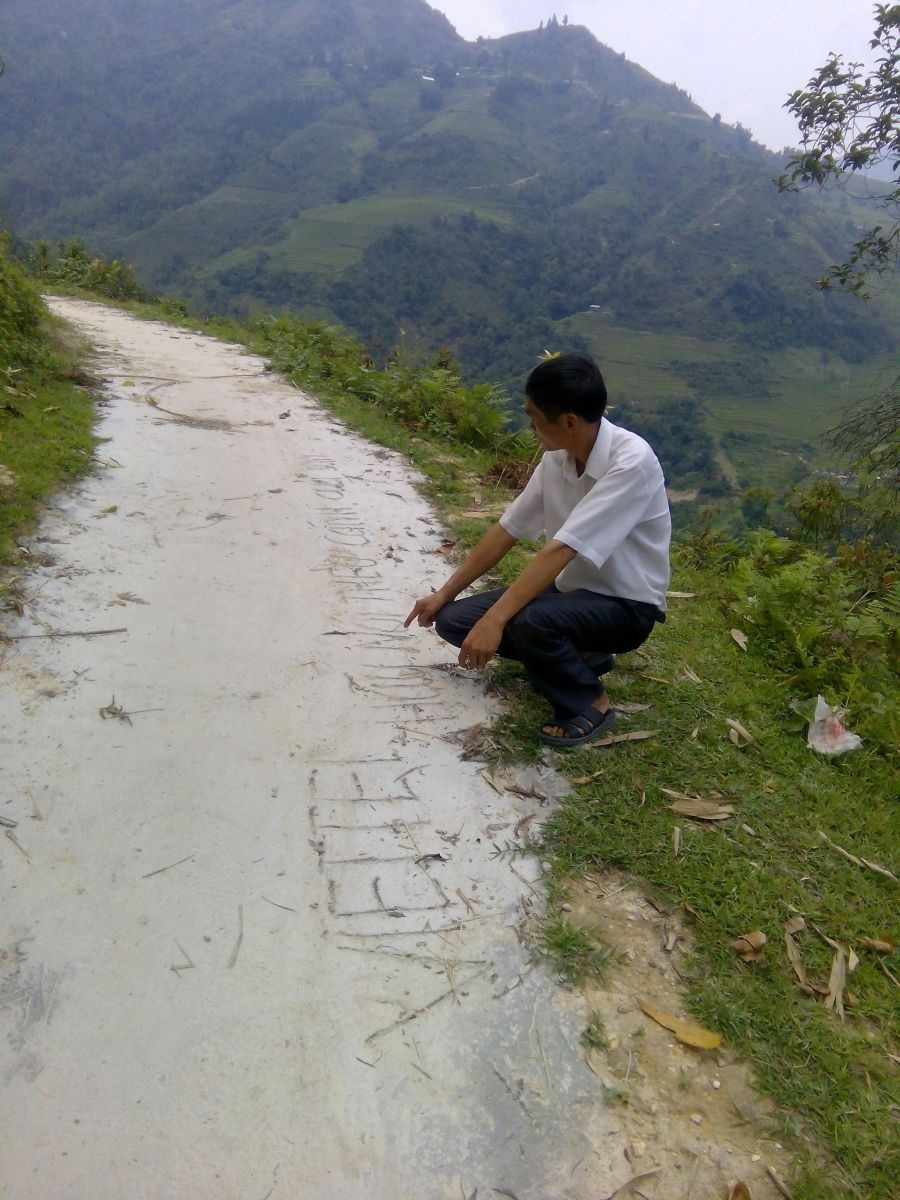 Trong không khí vui mừng của cả thôn khi có con đường bê tông mới, người dân đã cám ơn Viettel theo cách riêng của họ. Họ viết lên trên đường bê tông dòng chữ “Viettel hãy nói theo cánh của bạn”.