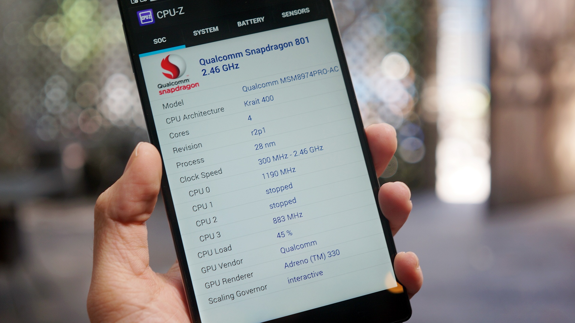 | Tương tự như chiếc LG G3, Vibe Z2 Pro dùng vi xử lý Qualcomm Snapdragon 801 tốc độ 2,5 GHz, RAM lên đến 3 GB. |