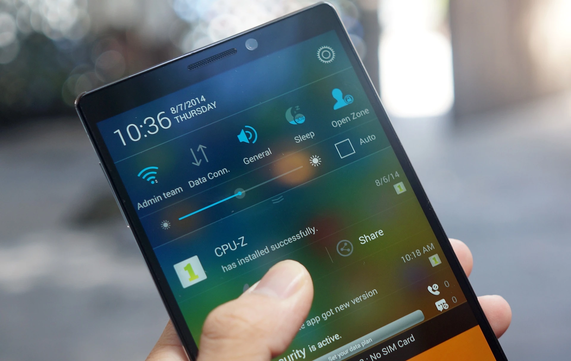 | Giao diện của Vibe Z2 Pro rất khác với model tiền nhiệm K900. Trung tâm thông báo có màu sắc và các biểu tượng gần giống với iOS 7. |