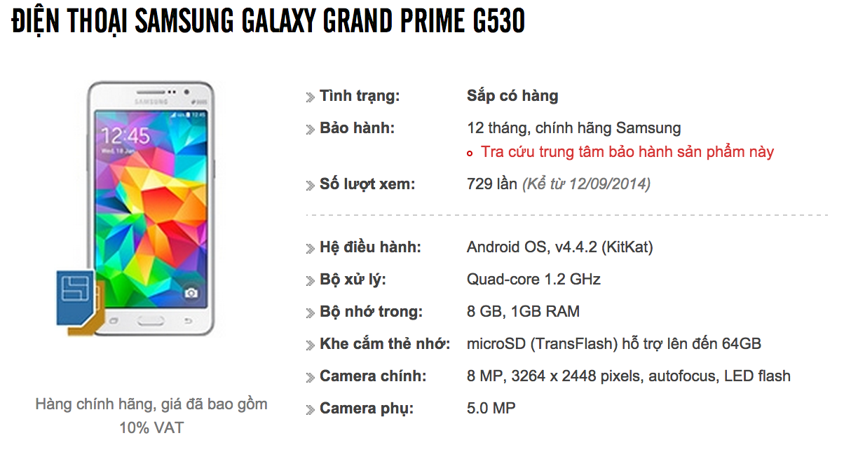 | Thông tin cơ bản về chiếc Grand Prime sắp lên kệ của Samsung. |