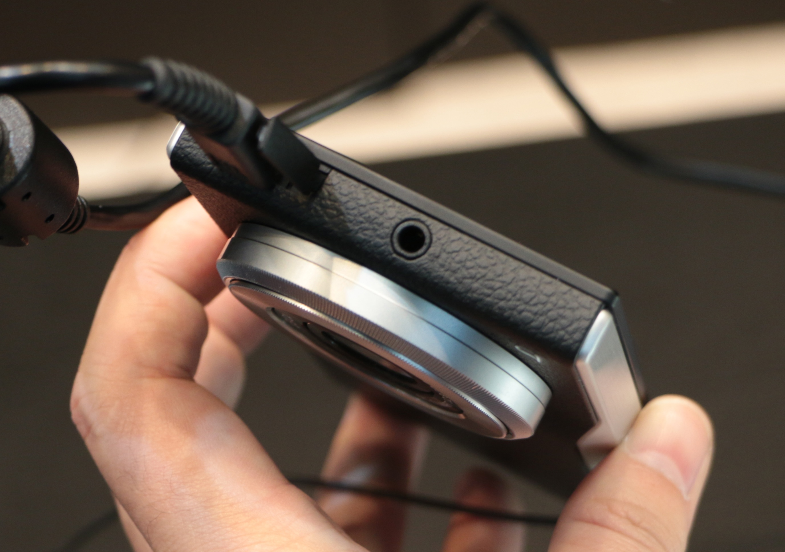 | Lumix CM1 sở hữu một bộ khung kim loại to bản, vỏ sau làm bằng da. Những đường cắt, vát của máy tỏ ra cá tính, các chi tiết được làm tinh xảo. Cảm giác cầm máy trên tay khá khác biệt so với cả việc cầm điện thoại lẫn máy ảnh compact. |