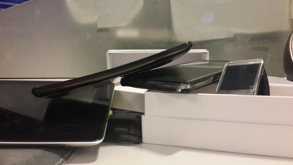 | Máy có trục cong nằm ngang, khác với trục dọc của Samsung Galaxy Round. |