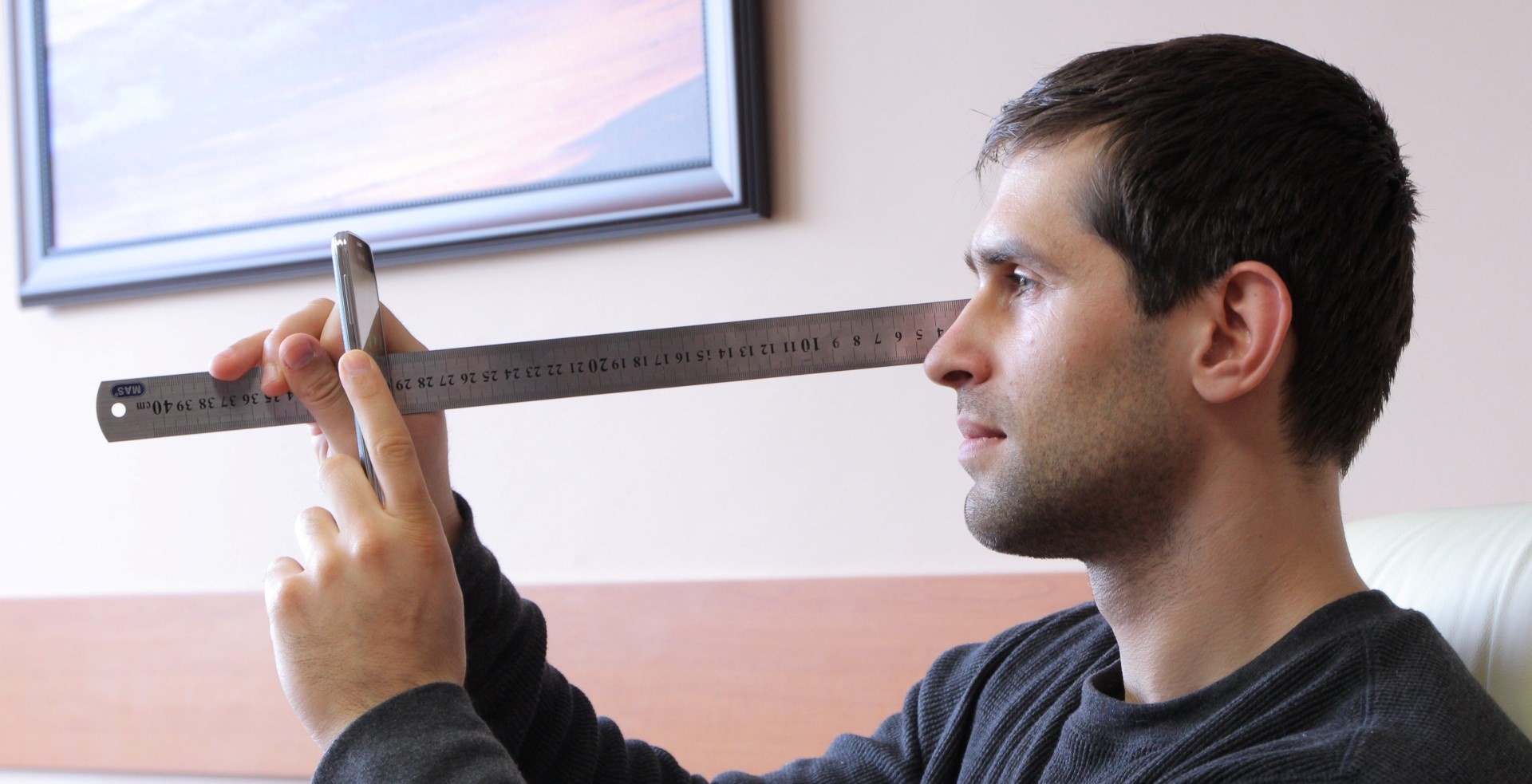 Để đo lường khoảng cách lý tưởng giữa mắt bạn và màn hình điện thoại, hãy giả sử rằng bạn là một trong số rất ít những người có thị lực hoàn hảo, tức là mức thị lực 20/20. Một người đạt tới mức thị lực này là người có thể nhìn rõ mọi vật với góc độ 1 phút (bằng 1/60 độ).