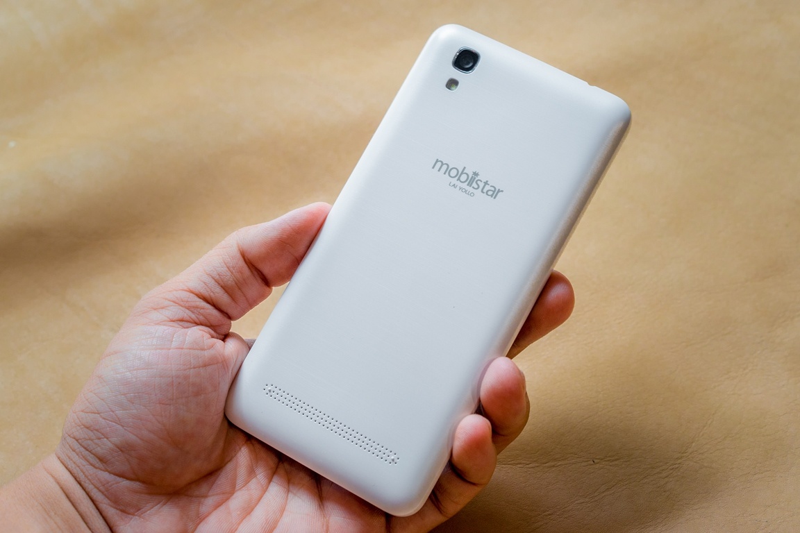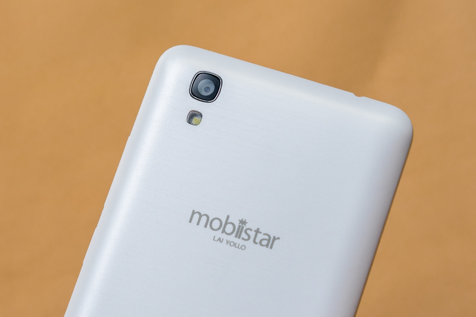 | Mặt lưng của LAI YOLLO có camera sau 8 MP và đèn flash phía trên. Phía dưới nắp lưng là loa thoại thiết kế trải dài gần hết chiều ngang của máy. Cân đối ở giữa là logo mobiistar của hãng cùng tên máy. |