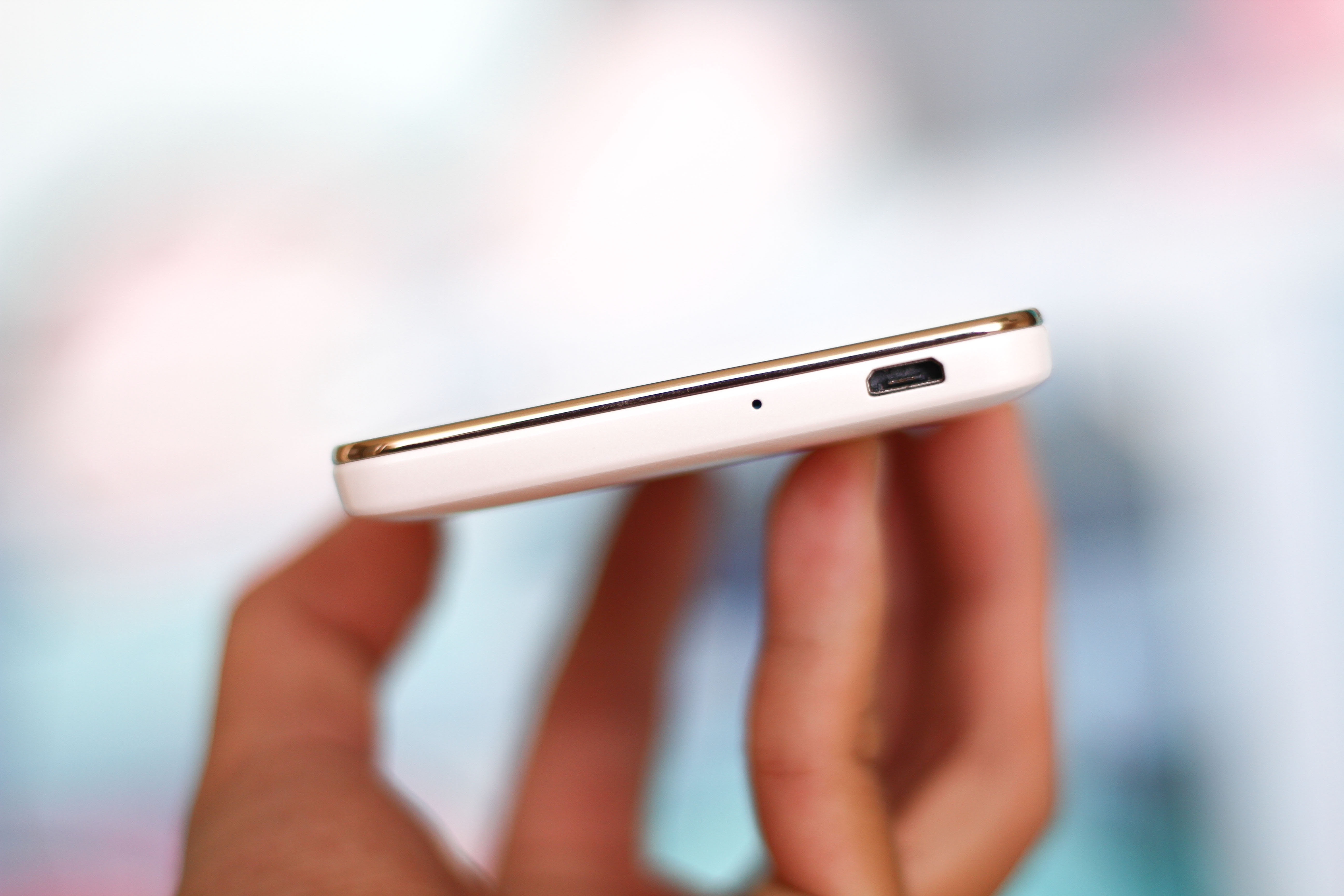 | Cạnh dưới là loa thoại và cổng kết nối micro USB. |