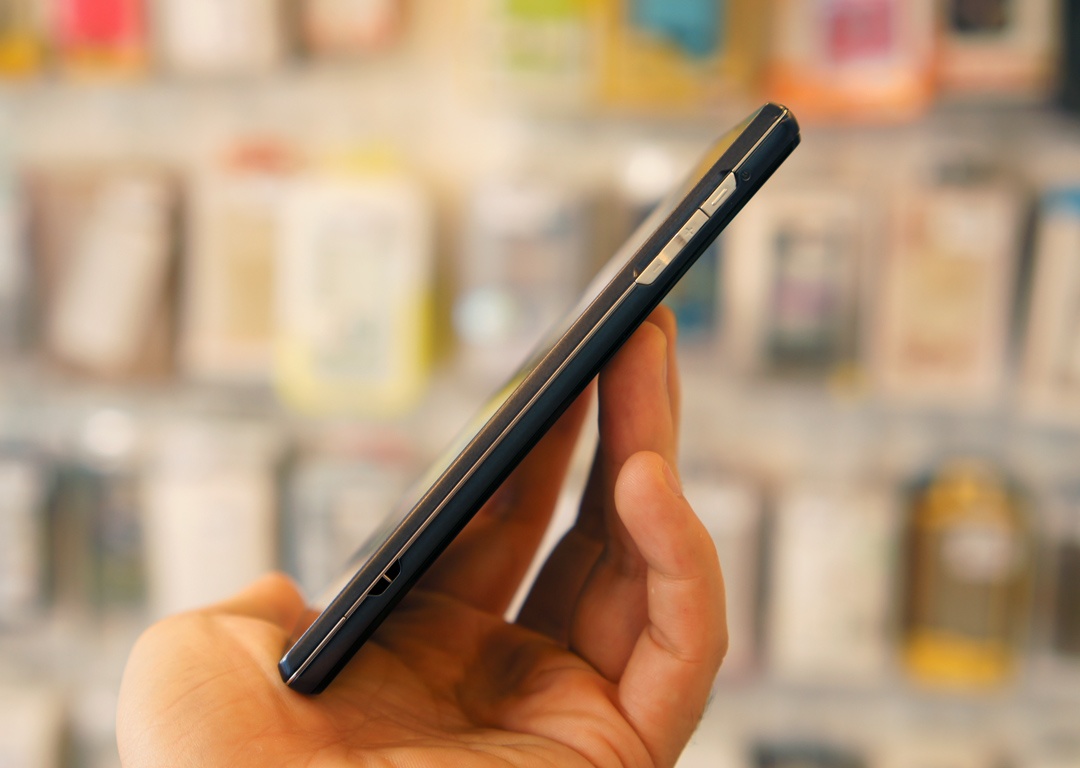 Cạnh phải là nơi đặt các phím nguồn và tăng giảm âm lượng. Máy có độ mỏng 9,3 mm, nặng 154 gram.