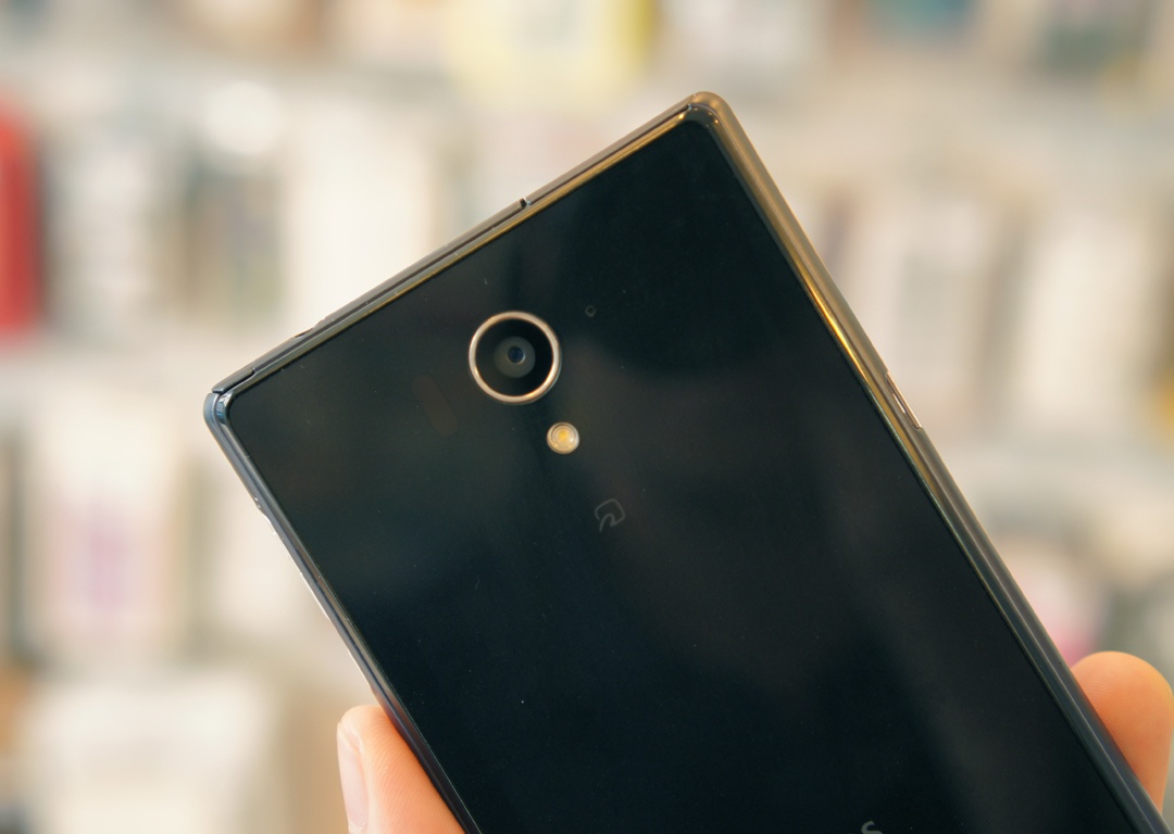 Mặt sau của máy phủ kính cường lực, giống với một số sản phẩm Xperia cao cấp của Sony.
