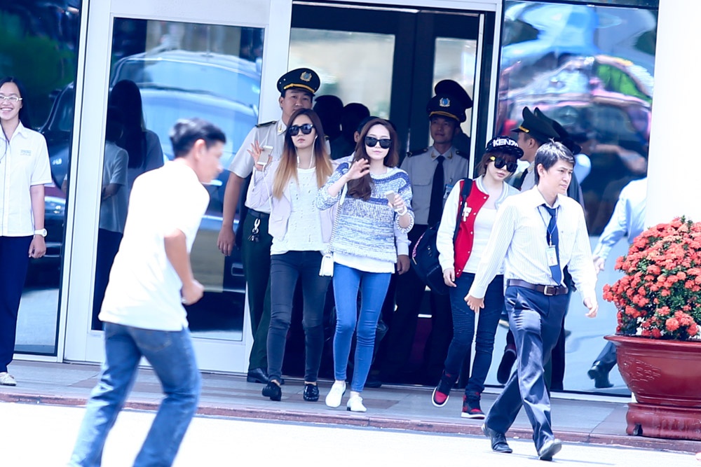 | Khoảng 12h trưa nay, 22/3, SNSD đã đặt chân xuống sân bay Tân Sơn Nhất sau một chuyến bay dài từ Hàn Quốc. Các cô gái đến Việt Nam chỉ đúng vài giờ trước khi buổi biểu diễn HEC Korea Festival bắt đầu. |