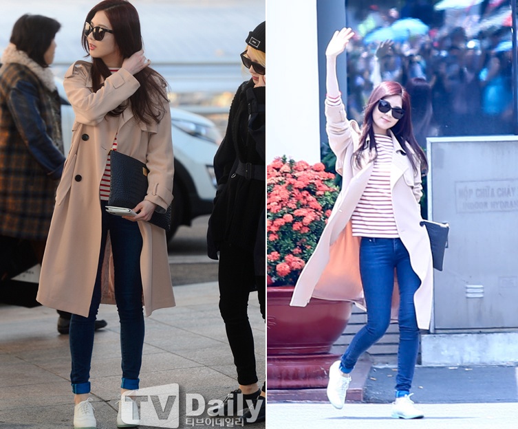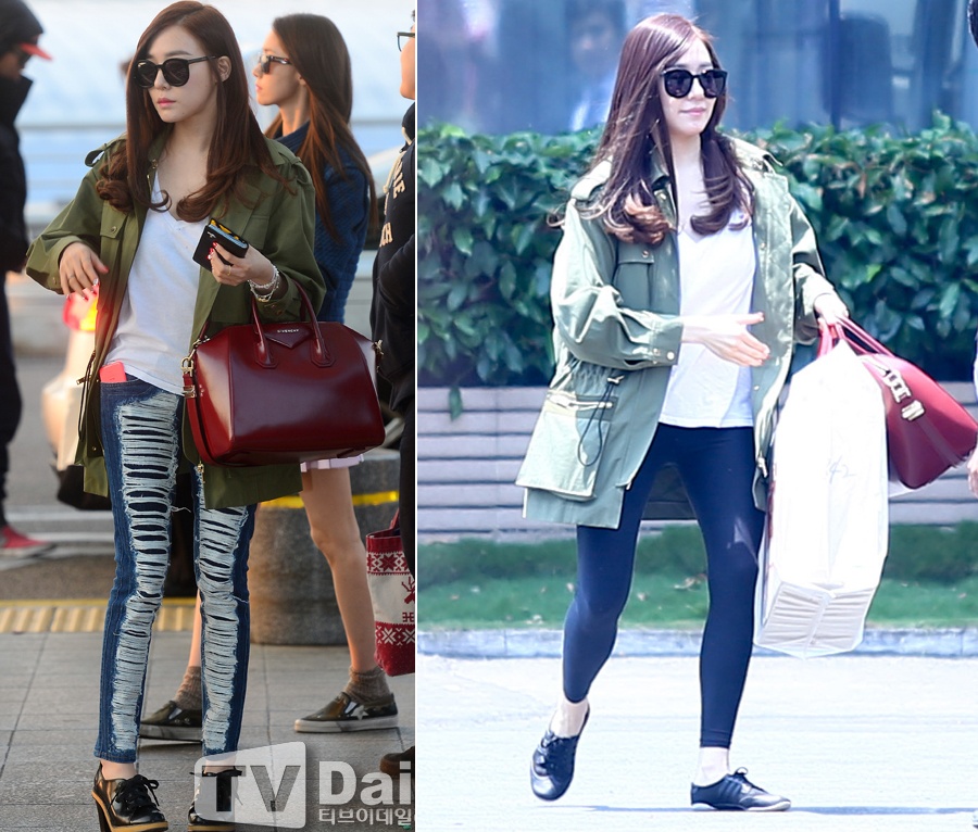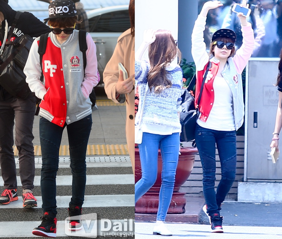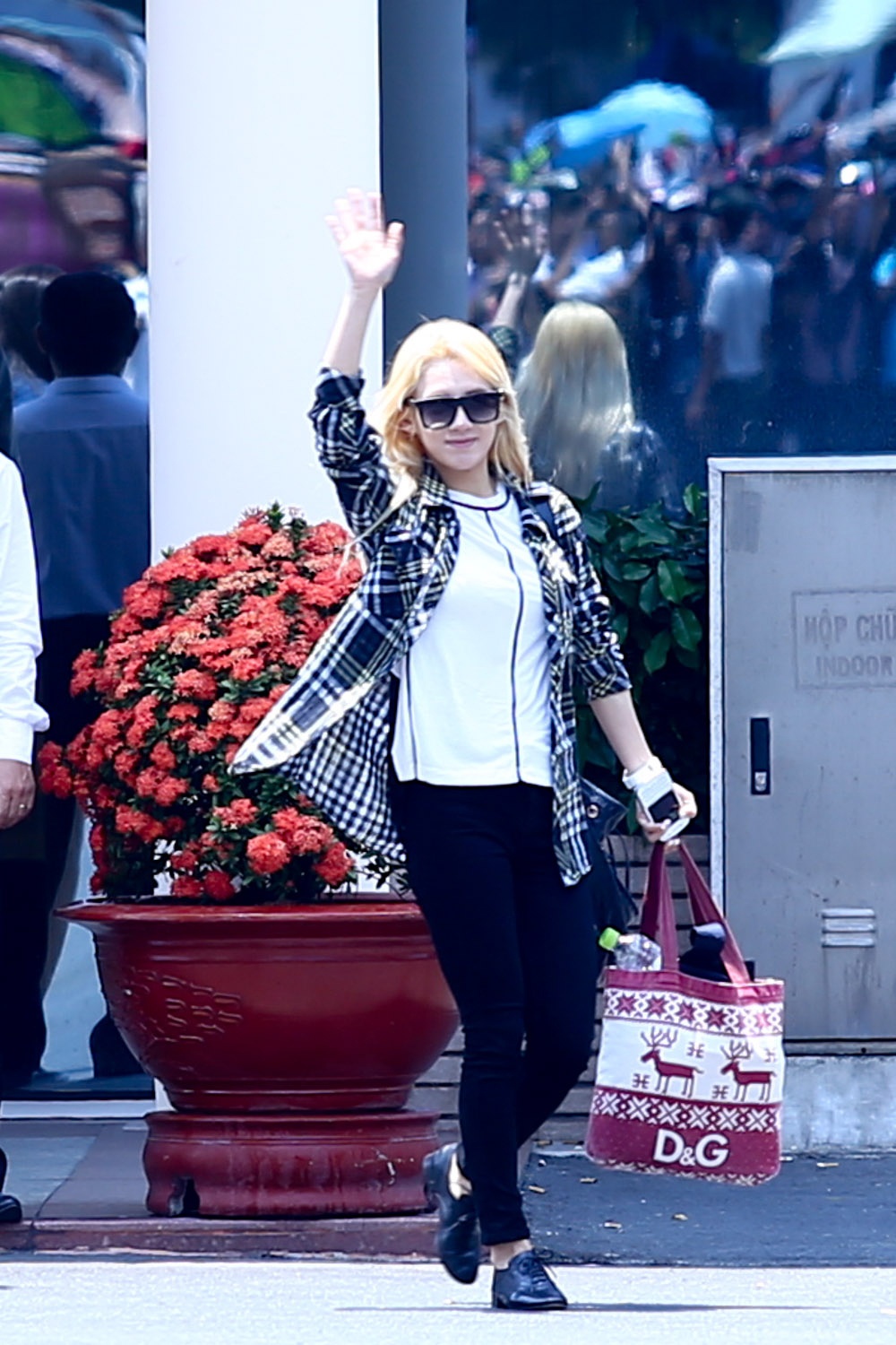 | Do có sự khác biệt về thời tiết ở Hàn Quốc và Việt Nam nên các cô gái có rất nhiều sự thay đổi khi bước chân lên máy bay ở Incheon và TP. HCM. Jessica đã kịp thay áo trước khi xuống máy bay. |
