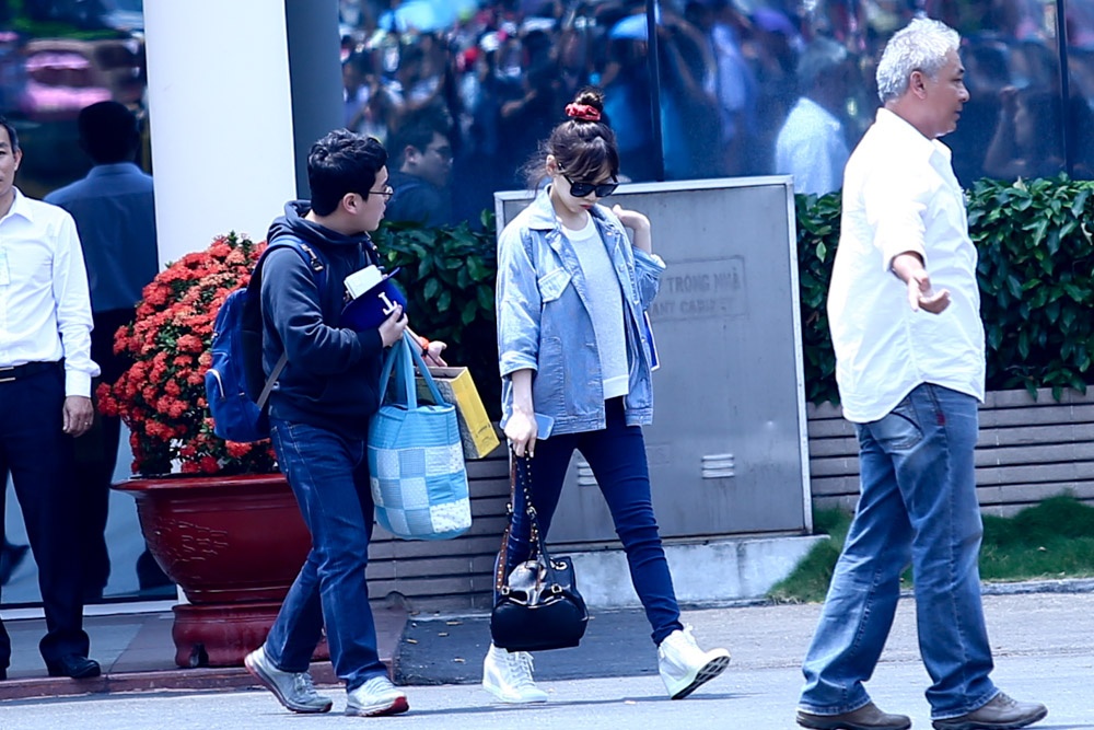 | Tiffany tay xách nách mang ở sân bay Tân Sơn Nhất. |