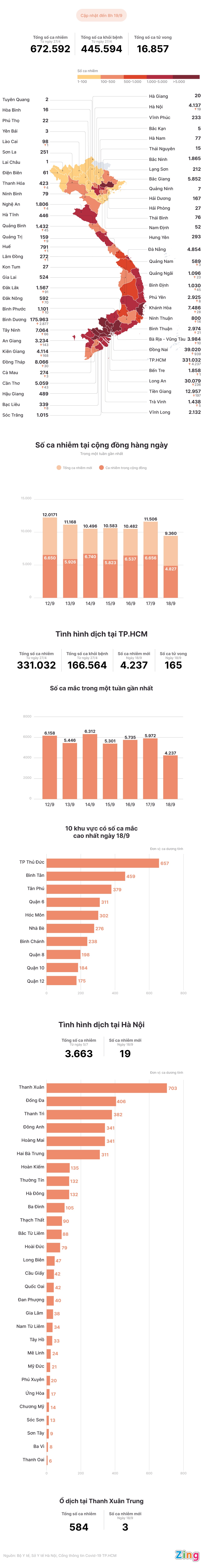 Trong ngày 18/9, TP.HCM ghi nhận 4.237 người mắc Covid-19. Số bệnh nhân tại thành phố giảm 1.735 ca so với ngày trước đó.