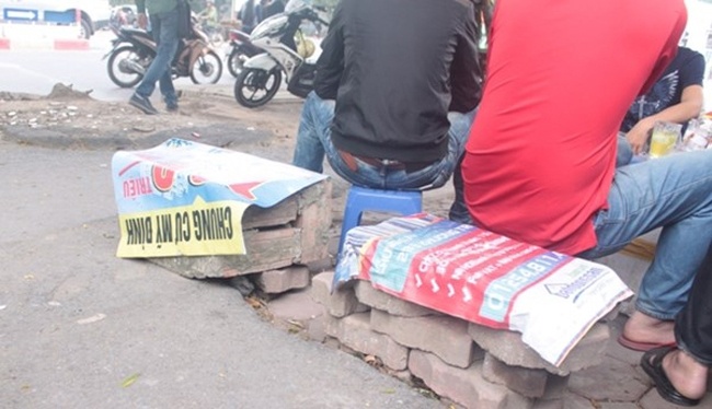 | "Có treo ở đó thì cũng có ai quan tâm đâu, thậm chí còn chẳng ai buồn ngoái đầu lại nhìn.Tôi không lấy để lót làm ghế cho khách thì mưa gió cũng làm rơi, làm hỏng thôi, còn bẩn đường phố hơn", Chị T. một người bán hàng nước trên phố Nguyễn Tuân nói. |