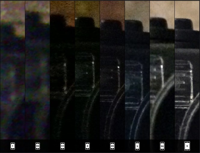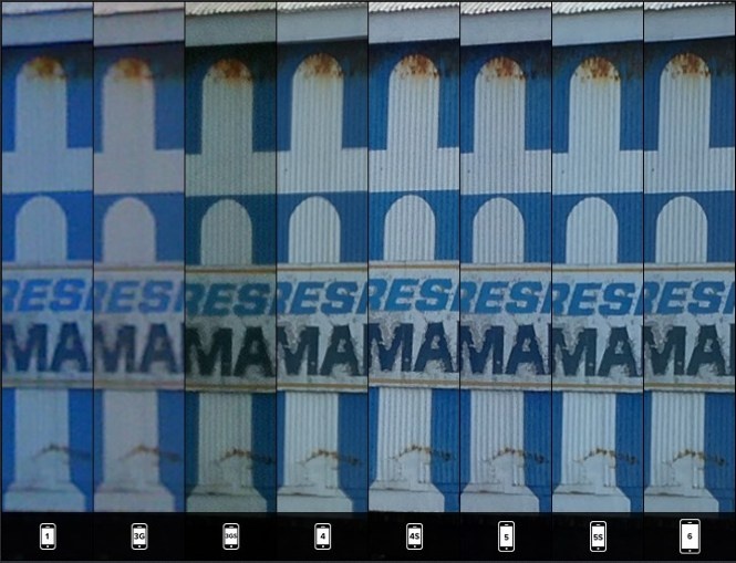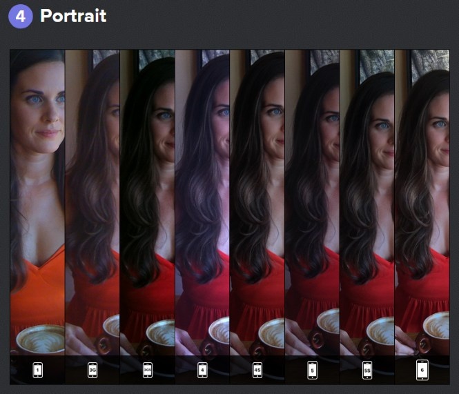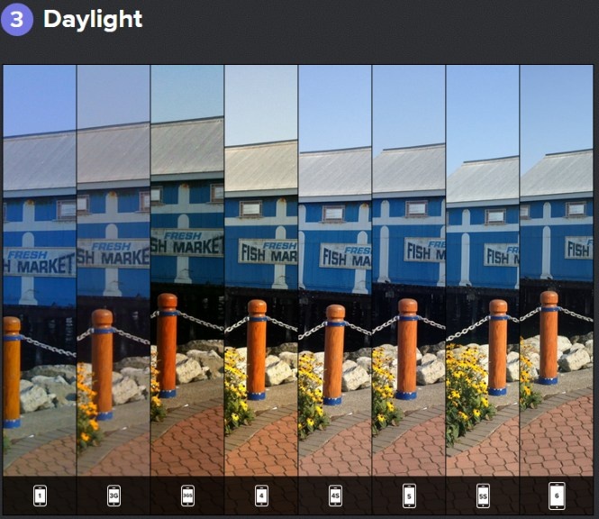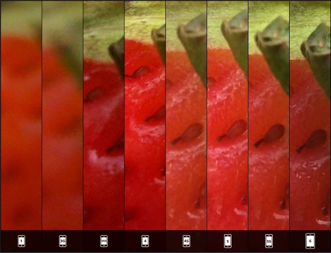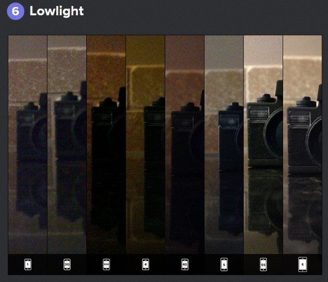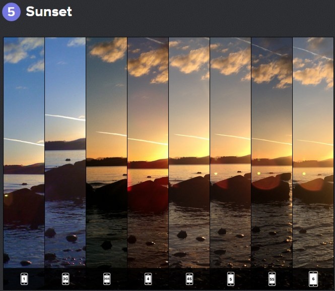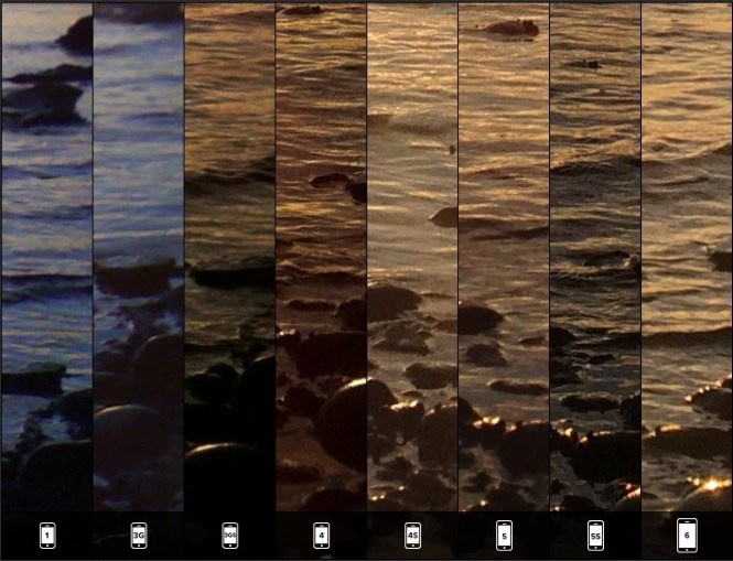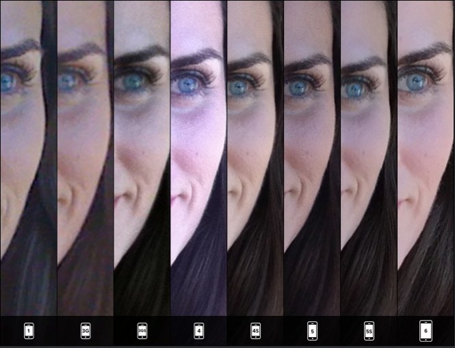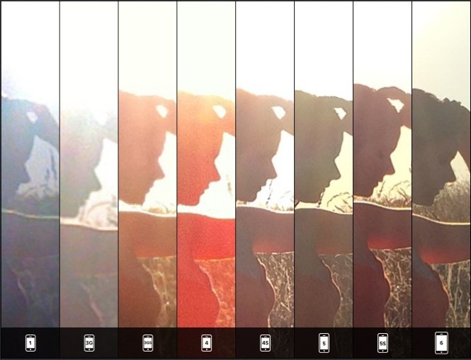 Nhiếp ảnh gia, nhà sản xuất ứng dụng, Lisa Bettany đã chụp những bức ảnh tương tự nhau bằng tất cả các phiên bản iPhone (trừ iPhone 5C) của Apple bao gồm: iPhone, iPhone 3G, iPhone 3GS, iPhone 4, iPhone 4S, iPhone 5, iPhone 5S và iPhone 6 rồi đặt chúng cạnh nhau.