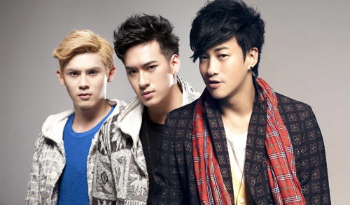 | Nam diễn viên Hà Nhuận Đông (góc phải) và nhóm nhạc đàn em AK. |