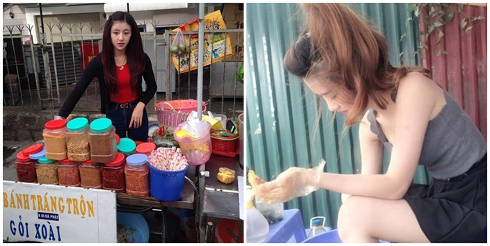 | Bảo Chi và Linh Ly đều là hai cô gái được dân mạng phong tặng danh hiệu "hot girl bánh tráng trộn". |
