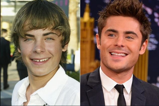 | Khi so sánh 2 bức ảnh của Zac Efron chụp vào năm 2004 và 2014 người hâm mộ có thể thấy sự thay đổi rõ rệt trên khuôn mặt của anh đặc biệt là hàm răng đã được chỉnh sửa khiếm khuyết. |