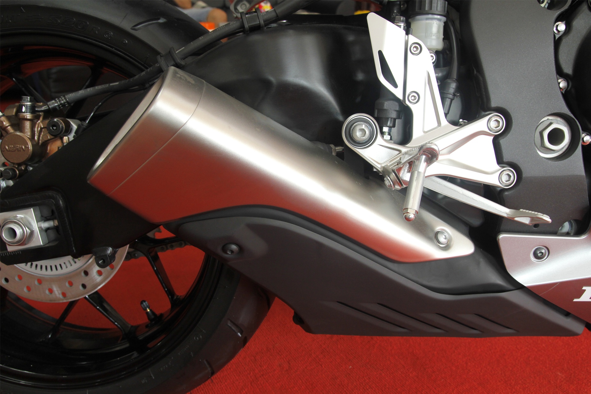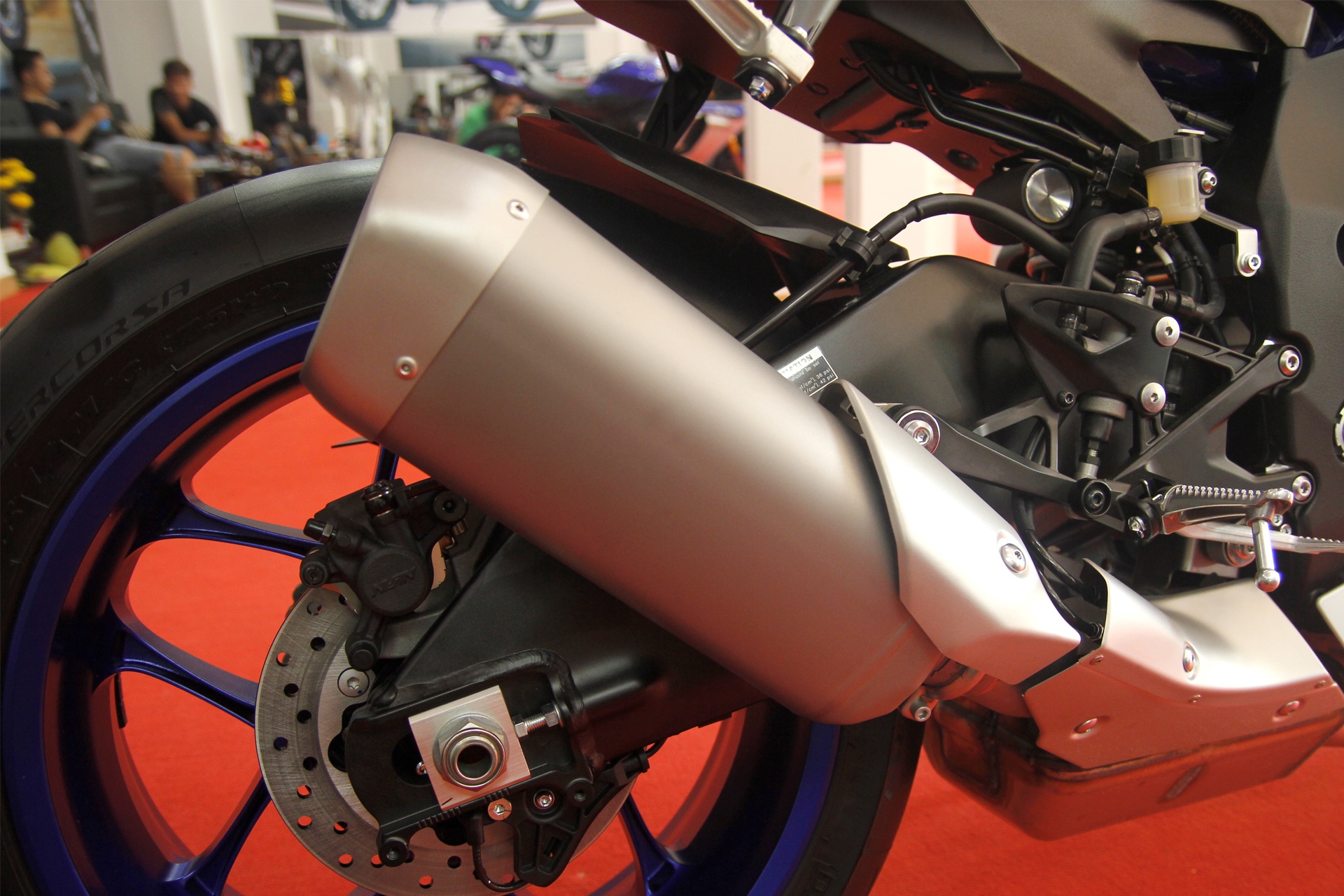 | Ống xả R1 được chuyển từ trên yên xuống dưới và ghép hai họng pô lại thành một. Honda CBR1000RR cũng từng có ống pô giấu dưới yên, nhưng các kỹ sư của hãng đã thu gọn ống pô và đưa xuống dưới nhằm tăng sự cân bằng. Tại thị trường Mỹ, Honda CBR1000 RR có giá khoảng 14.000 USD, trong khi R1 có giá 16.500 USD. |