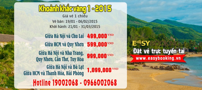 Nhân dịp xuân 2015, Easybooking.vn áp dụng bảng giá vé khuyến mãi mới: