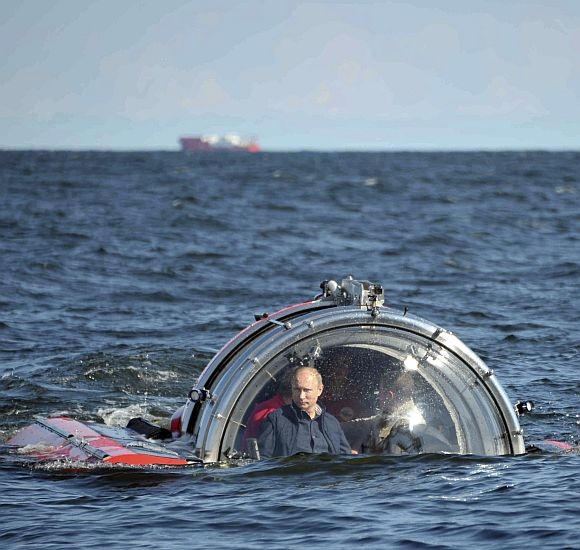 Tháng 7/2013, người đứng đầu điện Kremlin khám phá đại dương cùng tàu lặn C-Explorer 5 khi ông lặn xuống độ sâu 60 m để chiêm ngưỡng tàu khu trục hải quân Oleg, bị chìm tại vịnh Finland, biển Baltic vào thế kỉ 19. Ảnh: RIA Novosti
