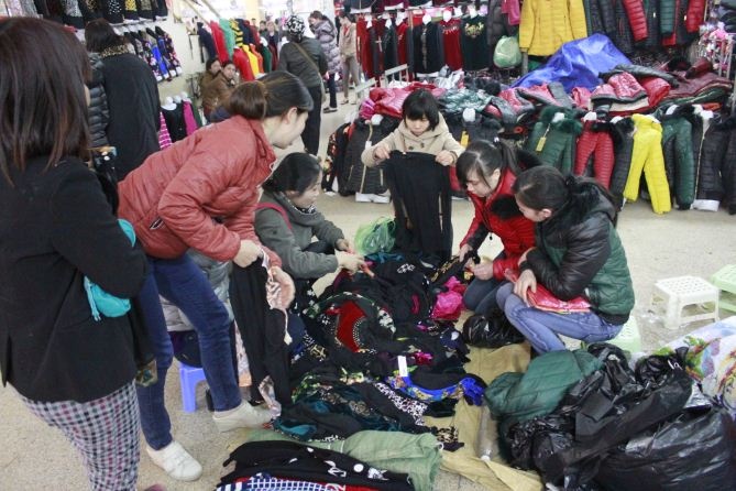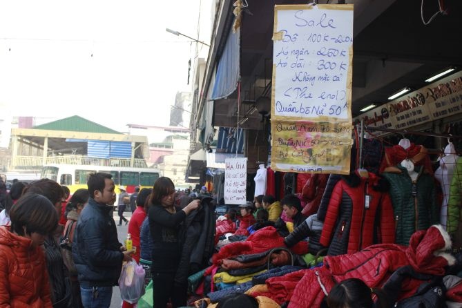 | Một chủ ki-ốt tâm sự, năm nay các mặt hàng quần áo buôn bán kém nên nhà nào buôn ít thì lỗ ít nhà nào buôn nhiều thì lỗ nhiều. Giờ sát tết rồi nên nhiều người tìm cách xả hàng để thu hồi vốn trả bớt nợ và cũng để tránh hàng "chết" trong kho. |