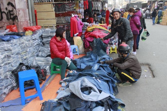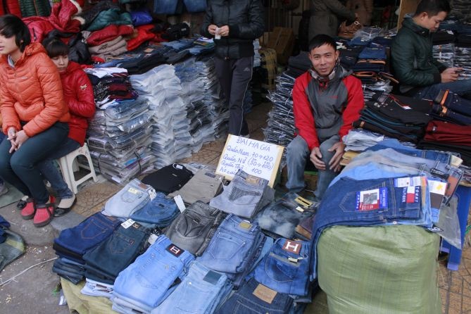 Một ki-ốt quần bò đại hạ giá ở chợ Đồng xuân.