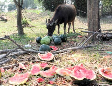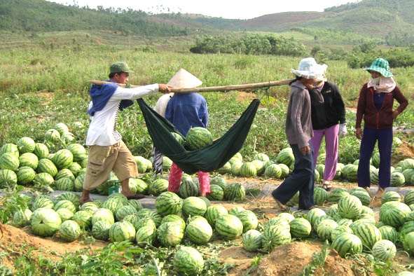 | Trồng dưa hấu mang lại hiệu quả kinh tế khá cao khi giá ổn định, song cũng như “đánh bạc với trời” khi điệp khúc “được mùa, mất giá - được giá, mất mùa” tái diễn nhiều năm qua. |