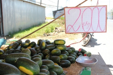 | Từ đầu năm đến nay giá dưa hấu rớt thảm hại, tại nhiều vùng, nông dân liên tục thua lỗ vì giá chỉ bằng 1/3 vụ trước. |