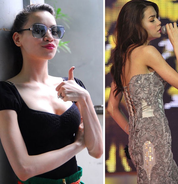 | Hồ Ngọc Hà có tay gầy và vòng mông lép. |