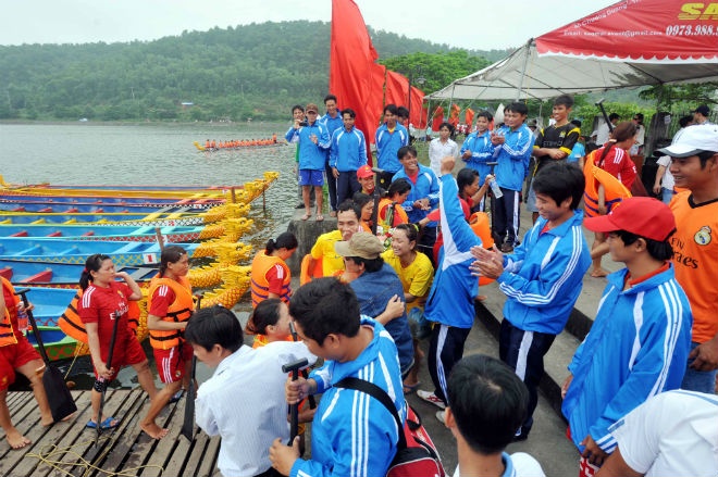 | Dù chiến thắng hay không, các đội thuyền đều nhận được sự chúc mừng nồng nhiệt của khán giả và đồng đội. |
