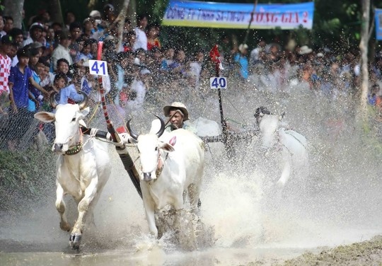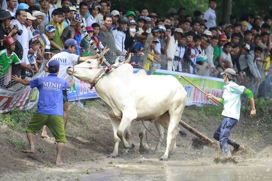 | Không ai nghĩ những con bò hiền lành suốt ngày cặm cụi kéo cày lại có thể tạo nên một không khí sôi động đến vậy trong một trường đua rất nhỏ. |