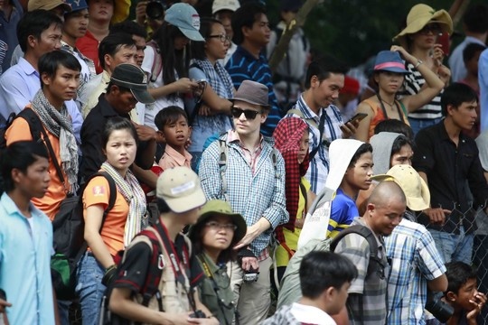 | Một du khách nước ngoài tỏ ra khá thích thú với lễ hội này. |