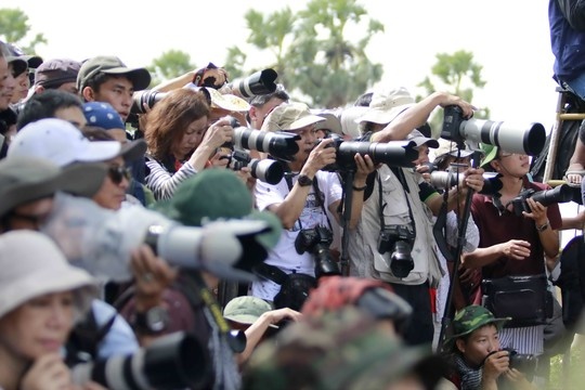 | Người dân, nhiếp ảnh gia trèo lên cây cao để xem và chụp ảnh. |